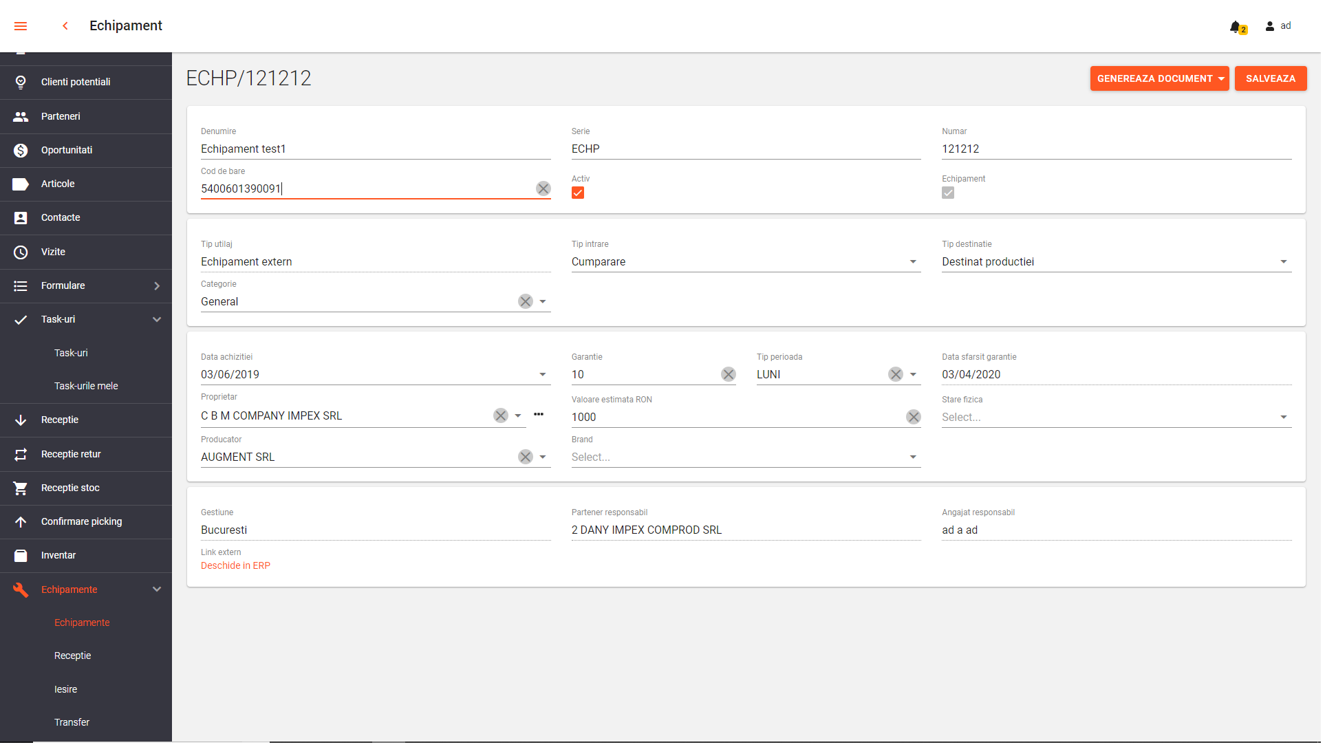 Gestioneaza eficient echipamentele plasate pe teren si realizeaza diferite actiuni cu privire la acestea: receptie, iesire, transfer sau inventar.