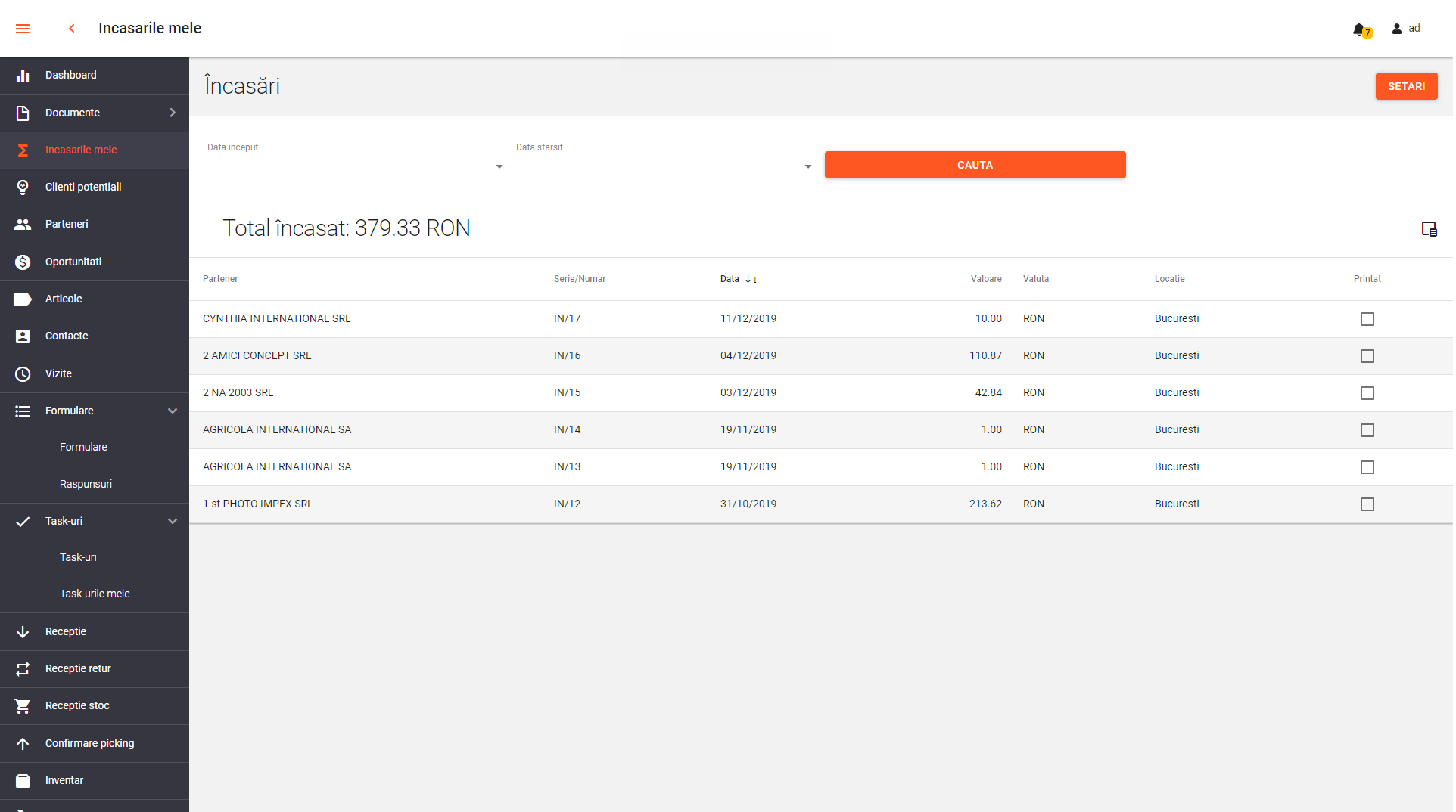Adauga cu usurinta comenzi, creeaza facturi si realizeaza incasari, pentru a incheia ciclul de vanzare pe loc, chiar la sediul clientului. Poti vizualiza cu usurinta stocurile si preturile articolelor, poti rezerva stocuri instant sau aplica automat politici comerciale stabilite in relatia cu clientii.