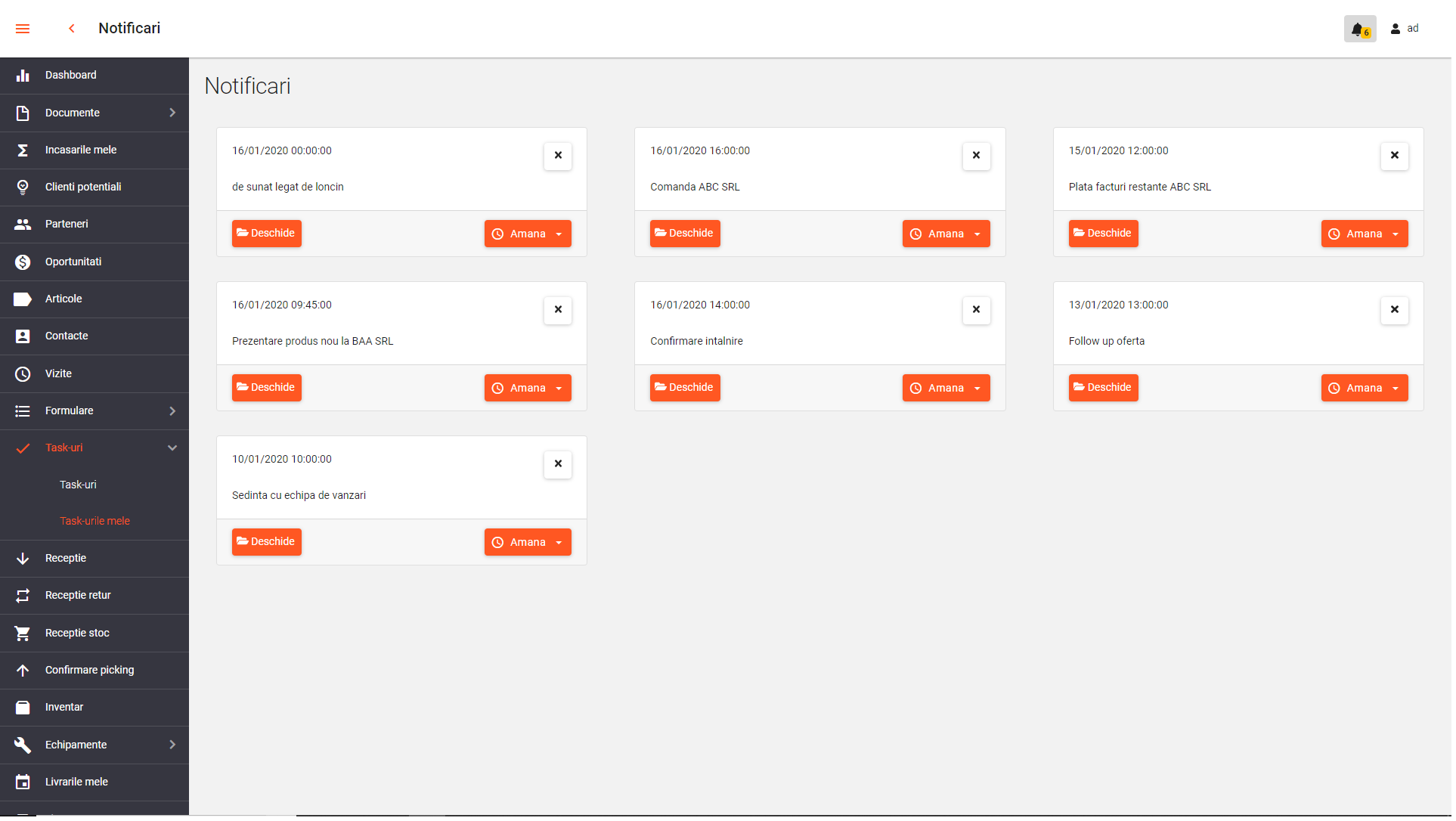 Vizualizeaza cu usurinta livrarile pe care trebuie sa le realizezi, inclusiv in cadrul unui calendar de livrari, pentru a-ti organiza cat mai eficient timpul.