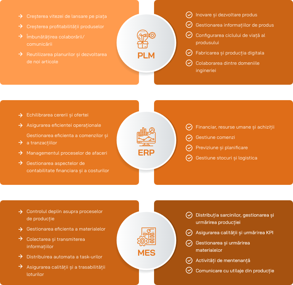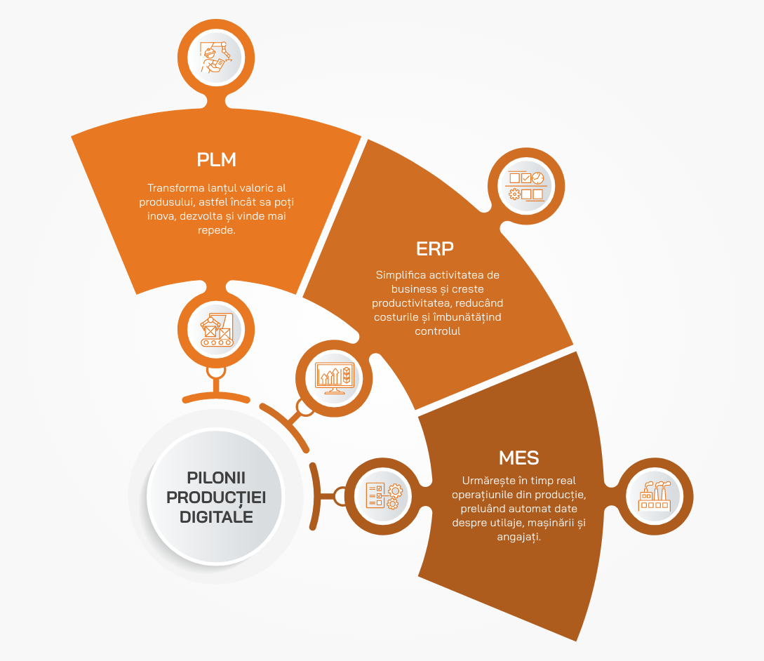 Home » Solutii software Productie pentru Automatizarea Fabricii » PLM, ERP si MES – pilonii fabricii digitale
