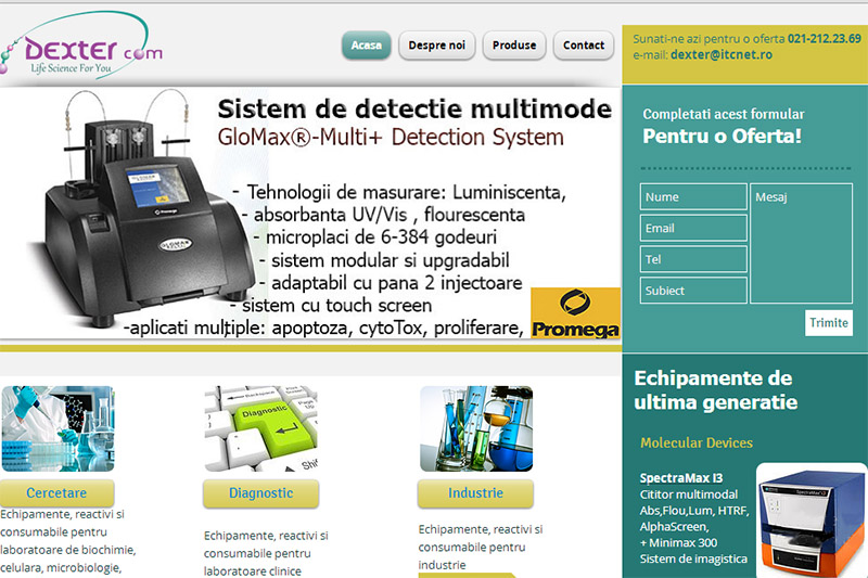 Dexter Com a fost infiintata in Bucuresti in anul 1996 si are ca obiect de activitate importul si distributia de echipamente, reactivi si consumabile pentru laboratoare de cercetare biomedicala si industrie. Compania este reprezentant autorizat si exclusiv pentru Beckman Coulter, Promega Corp, Molecular Devices etc.