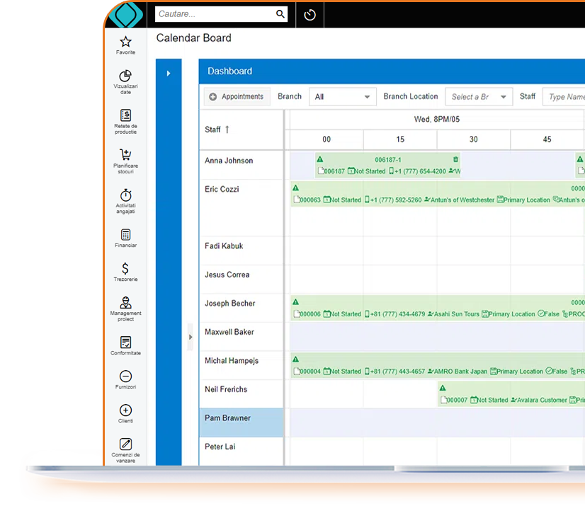 Solutia pentru managementul operatiunilor de service include un calendar integrat, care permite crearea, planificarea si alocarea resurselor intr-un mod intuitiv si flexibil.