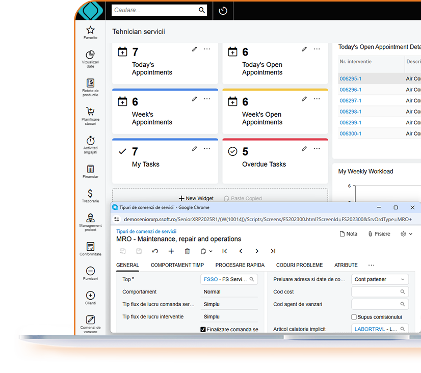 Obtine control total asupra operatiunilor de service, de la planificare la raportare