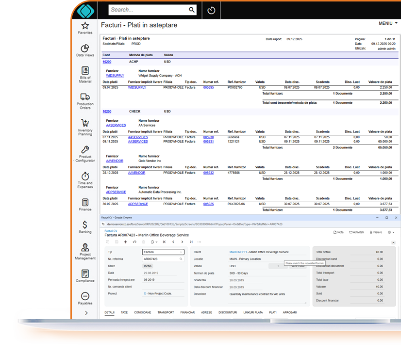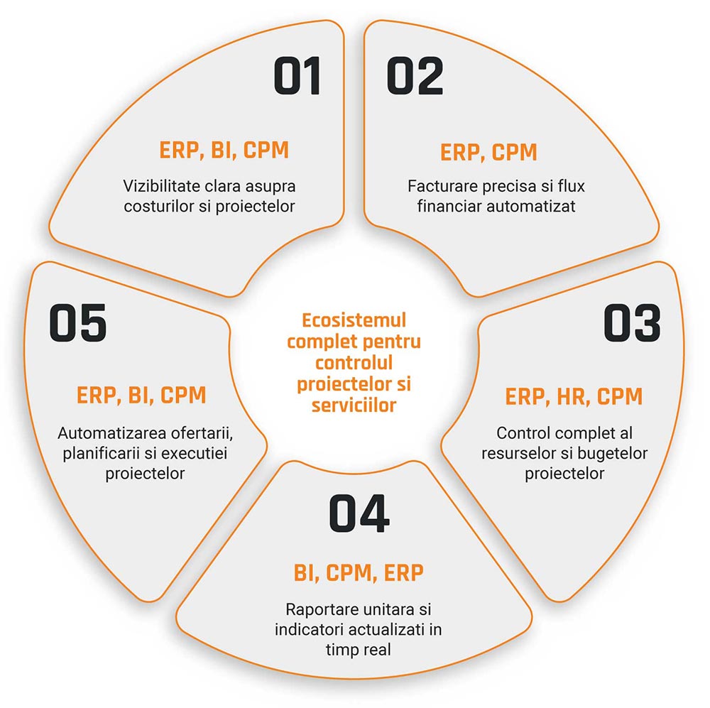 Administreaza complet activitatile si livrarile din proiecte cu ajutorul solutiei ERP, pentru o executie precisa si o monitorizare usor de controlat.
